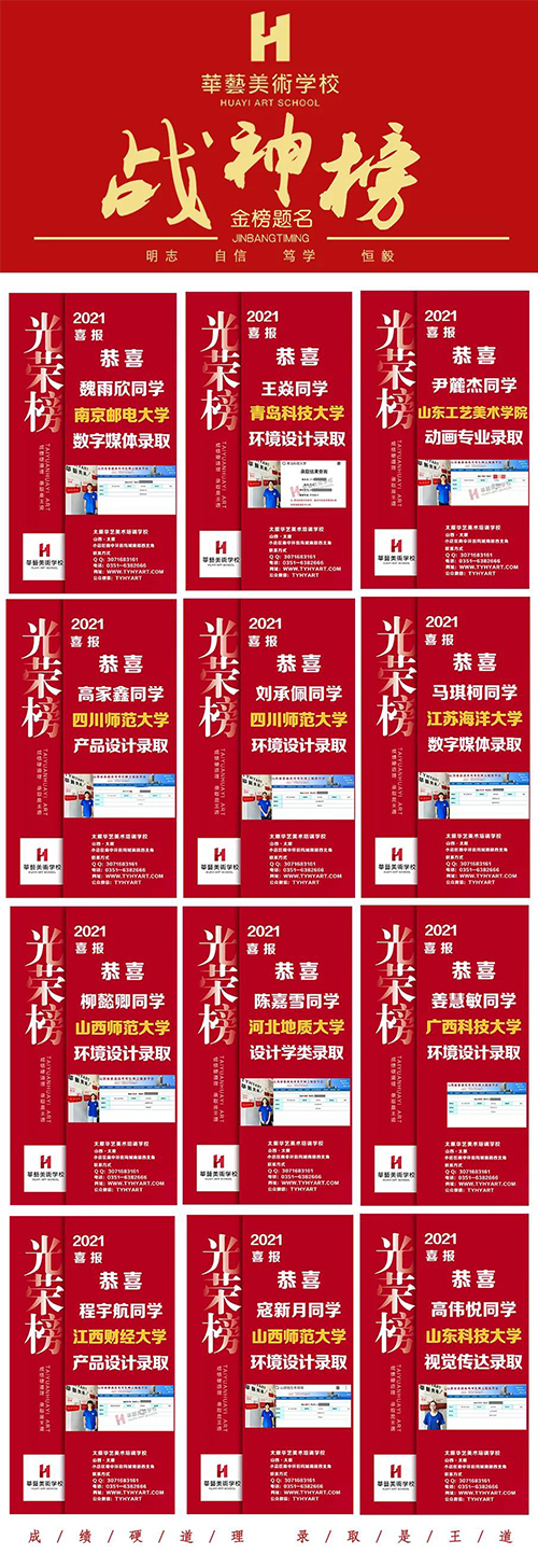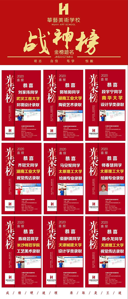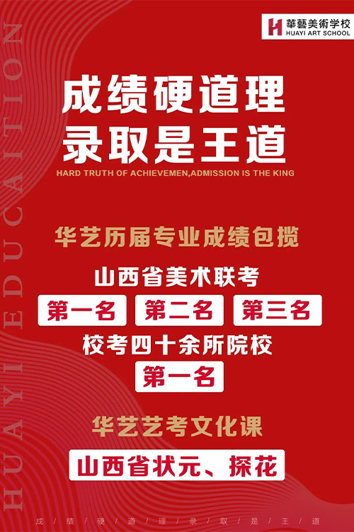 華藝美校緻力于高考美術(shù)培訓22年(nián)來(lái),一直堅持“成績硬道理(lǐ),錄取是王道”的辦學标準,始終秉持“不爲灌輸、隻爲點燃”的教學理(lǐ)念,始終堅守“不抛棄、不放(fàng)棄”的華藝精神,已成爲山(shān)西省美術(shù)高考權威領 軍品 牌之一。多年(nián)來(lái),爲全國(guó)各大(dà)院校輸送了大(dà)量優 質生源,爲廣大(dà)學生和家長提供高 品質的教育與服務,一直是所有華藝人(rén)堅持不懈的追求。