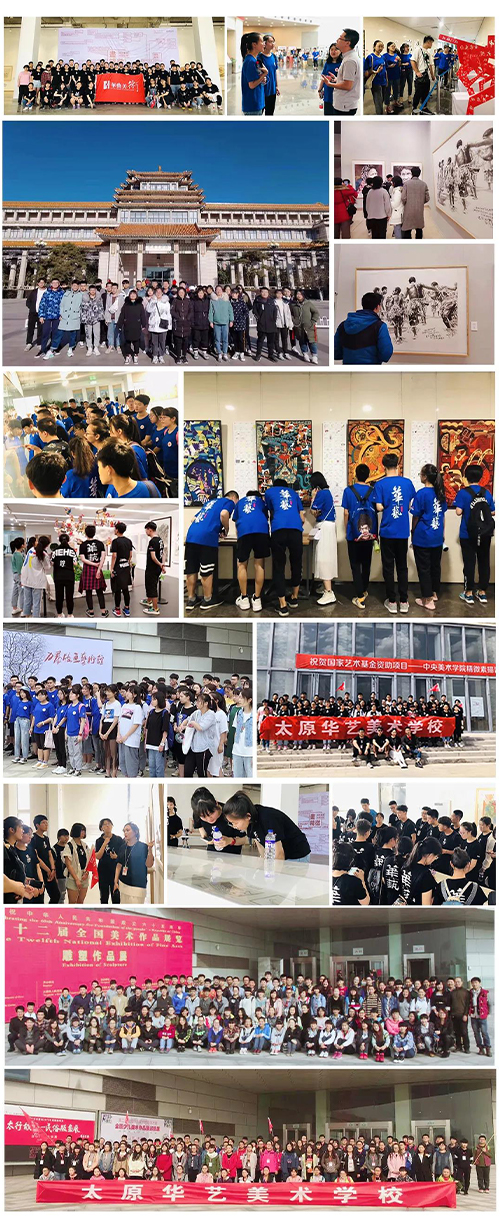 學校定期組織學生看(kàn)展,觀摩大(dà) 師作(zuò)品,專業課老師陪同講解,提升學生思維,開拓學生眼界。