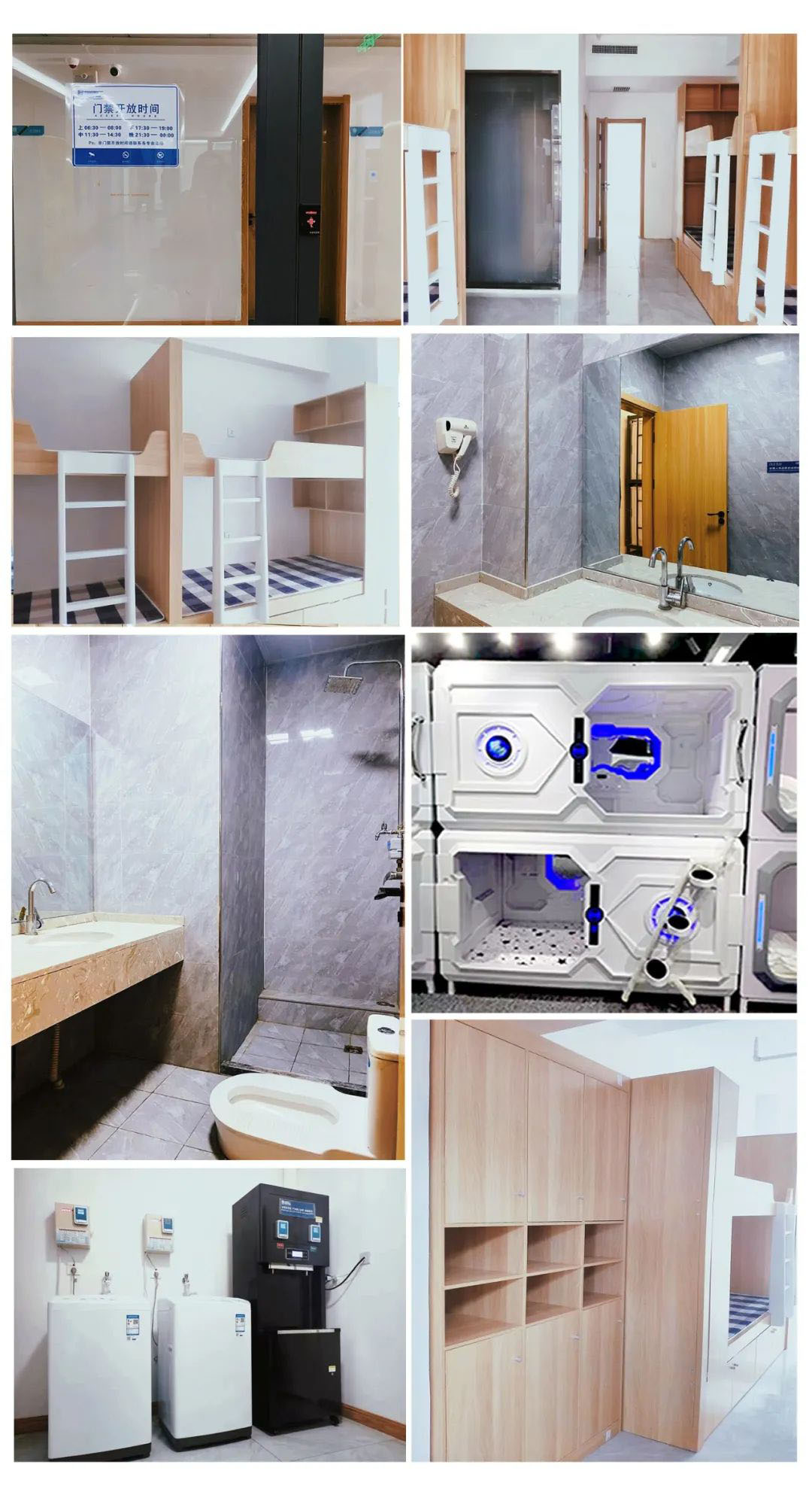 華藝宿舍是标準的學生宿舍,有6人(rén)間和8人(rén)間。每間宿舍裡(lǐ)面都(dōu)設有中 央空調、獨立衛生間、獨立洗浴。每層都(dōu)設有獨立的洗衣機(jī)、直飲水機(jī)。24小時不間斷熱(rè)水,并安排有後勤老師負責查寝。